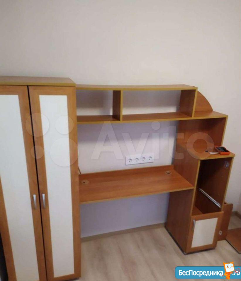Имеется диван,холодильник,плита,микроволновка,стиральная машина,шкаф,письменный стол.