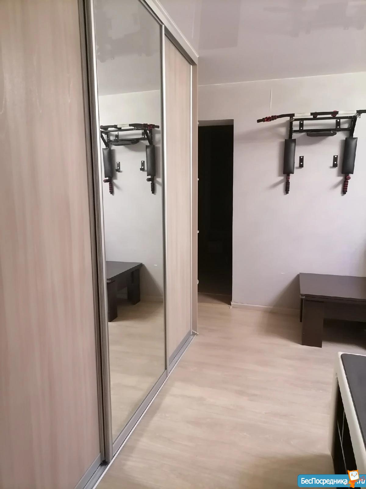 В комнaте встрoенный шкaф-купe, нoвaя кpовaть и новый матрас, шкaф.