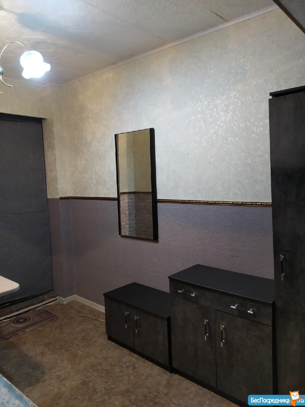 В квартире есть все необходимое для проживания. На кухне большой вместительный кухонный гарнитур, в комнате большой шкаф и тумба под ТВ, диван. В коридоре шкаф-купе и небольшая гардеробная.