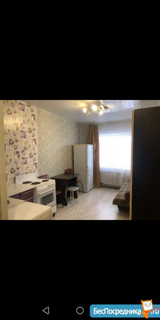 Сдам комнату-студию 18 м2, санузел совмещенный.Есть диван,стенка, телевизор,холодильник,стиральная машинка, плита.Цена 12 т.р.+ свет,вода по счетчикам. Собственник. На длительный срок, без детей и животных. Без залога.