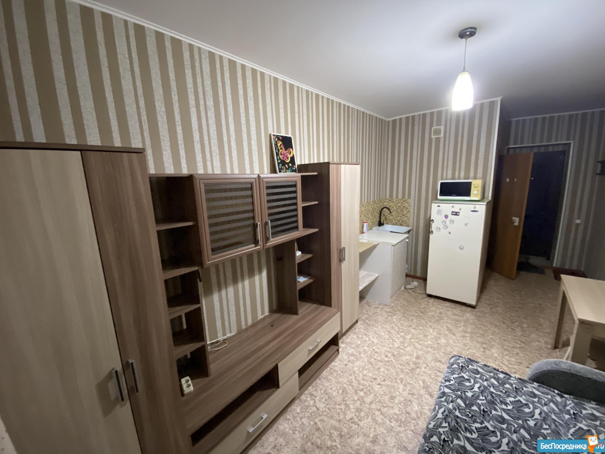 Собственник. сдам комната-студия .Мебель - диван, стенка, кухонные шкафы, телевизор, стиральная машинка, плита с духовкой, чайник, микроволновка, холодильник. на длительный срок. Без детей и животных.