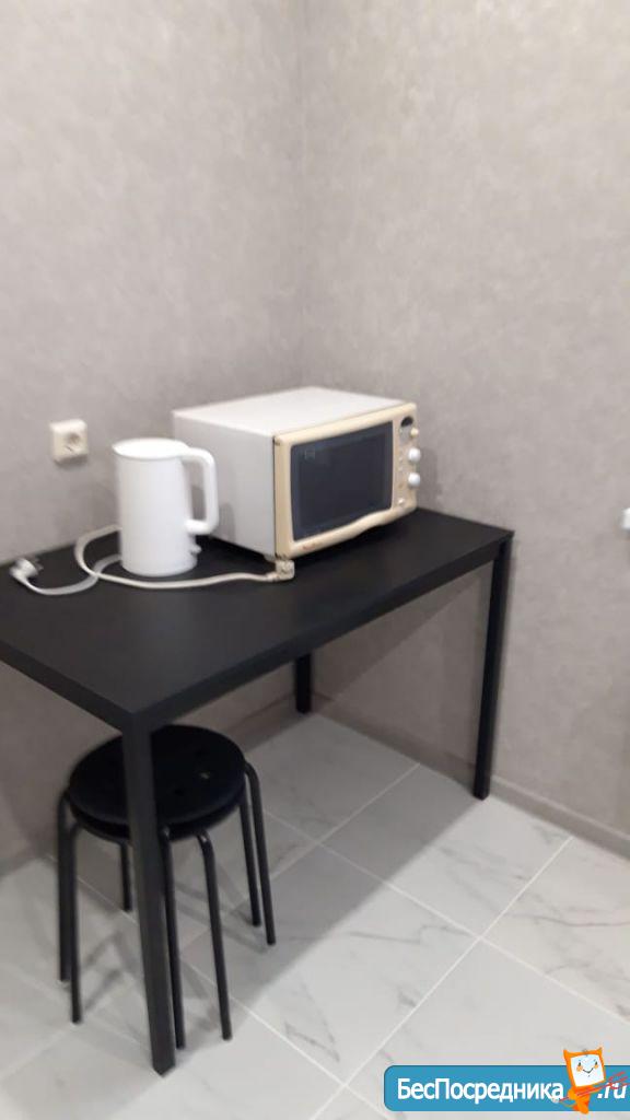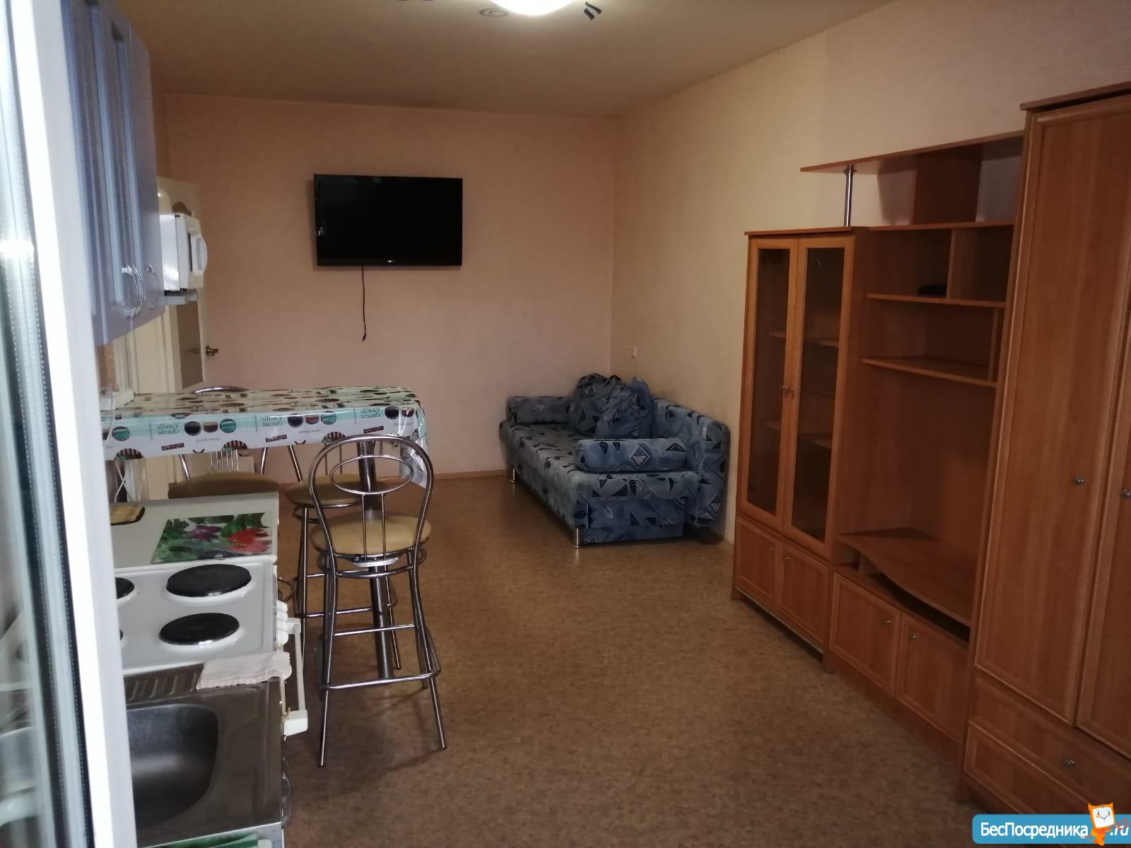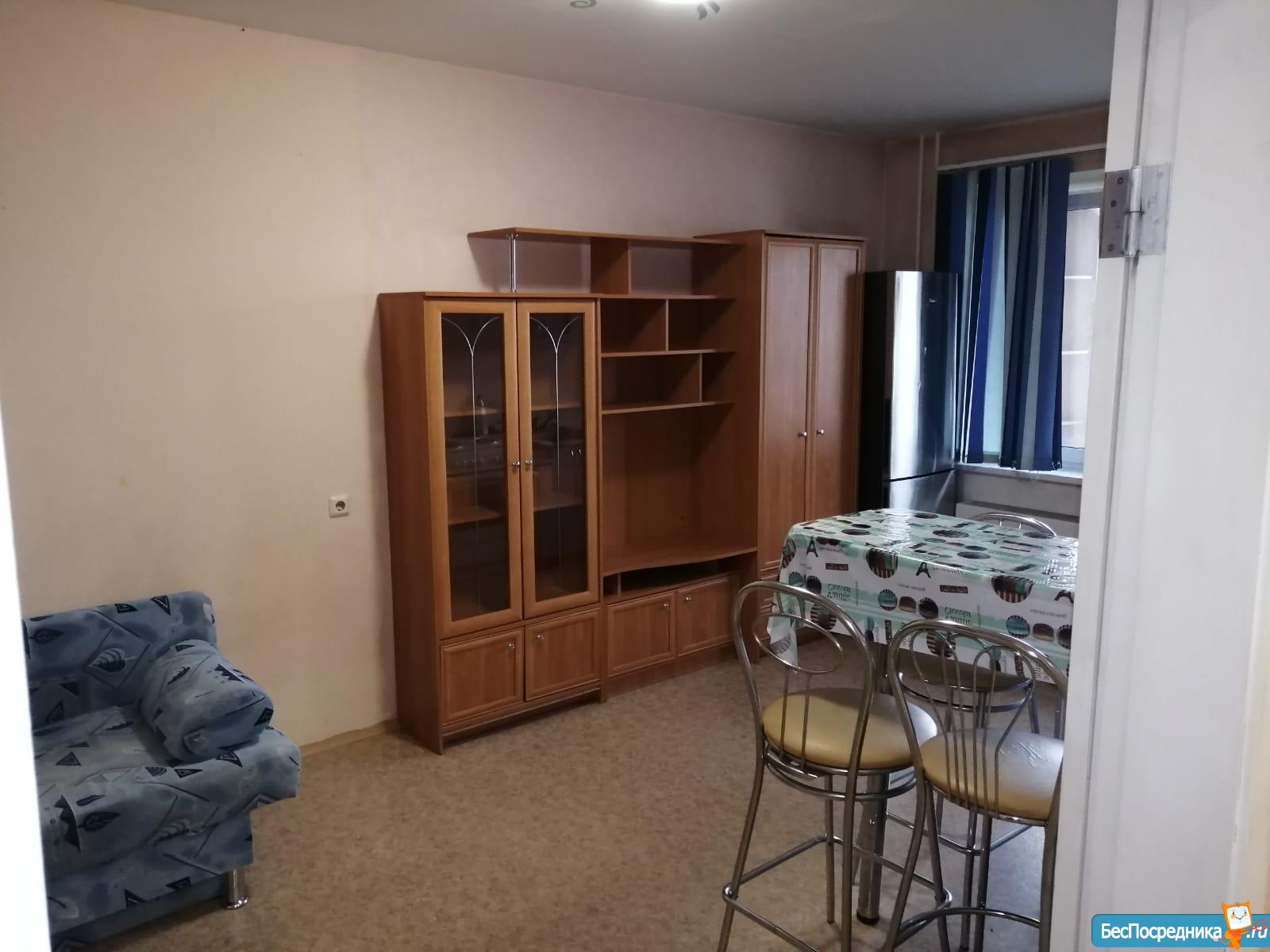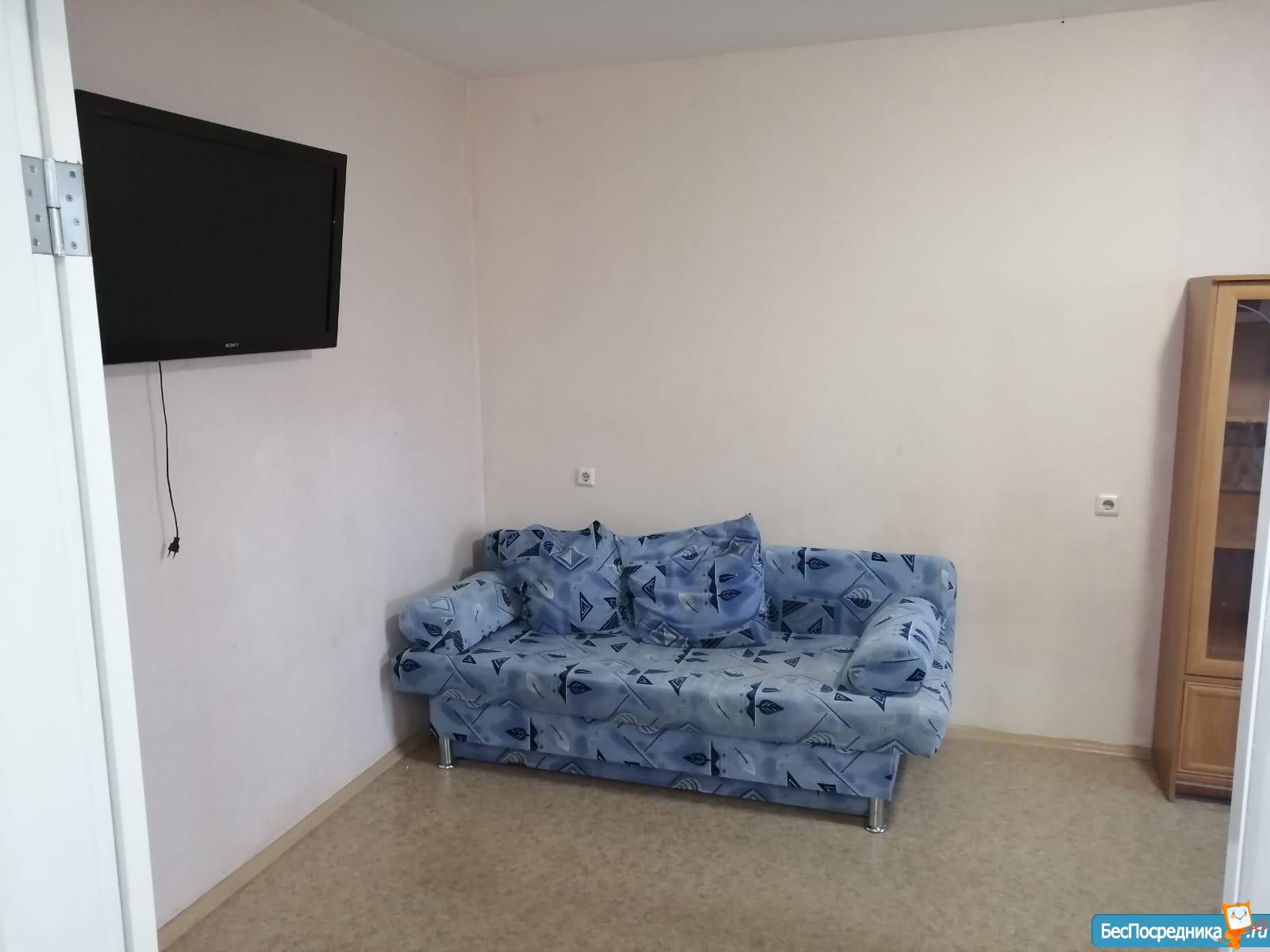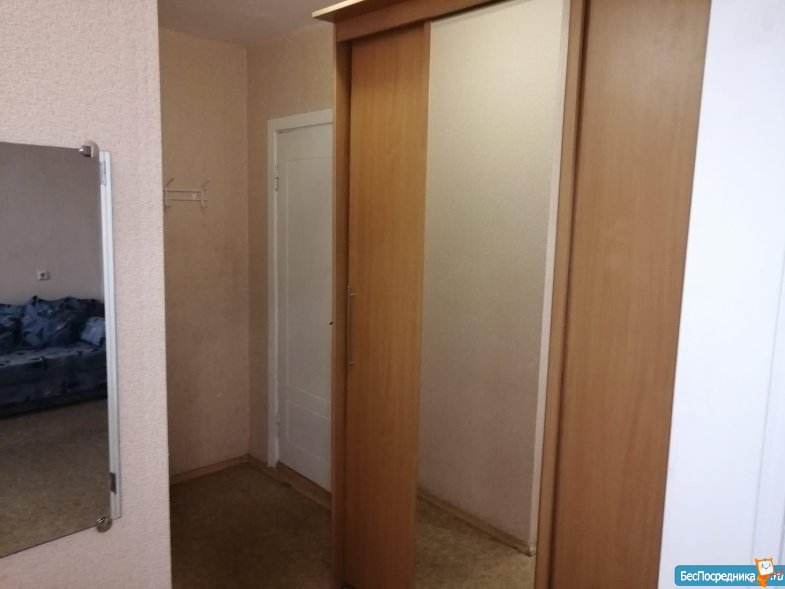 Все готово для проживания: диван на 2х человек, большой и вместительный шкаф-купе, стиральная машина, плита, небольшой духовой шкаф, новый холодильник, телевизор с подключённым wi-fi и tv. Также в прихожей есть шкаф и место для размещения обуви.