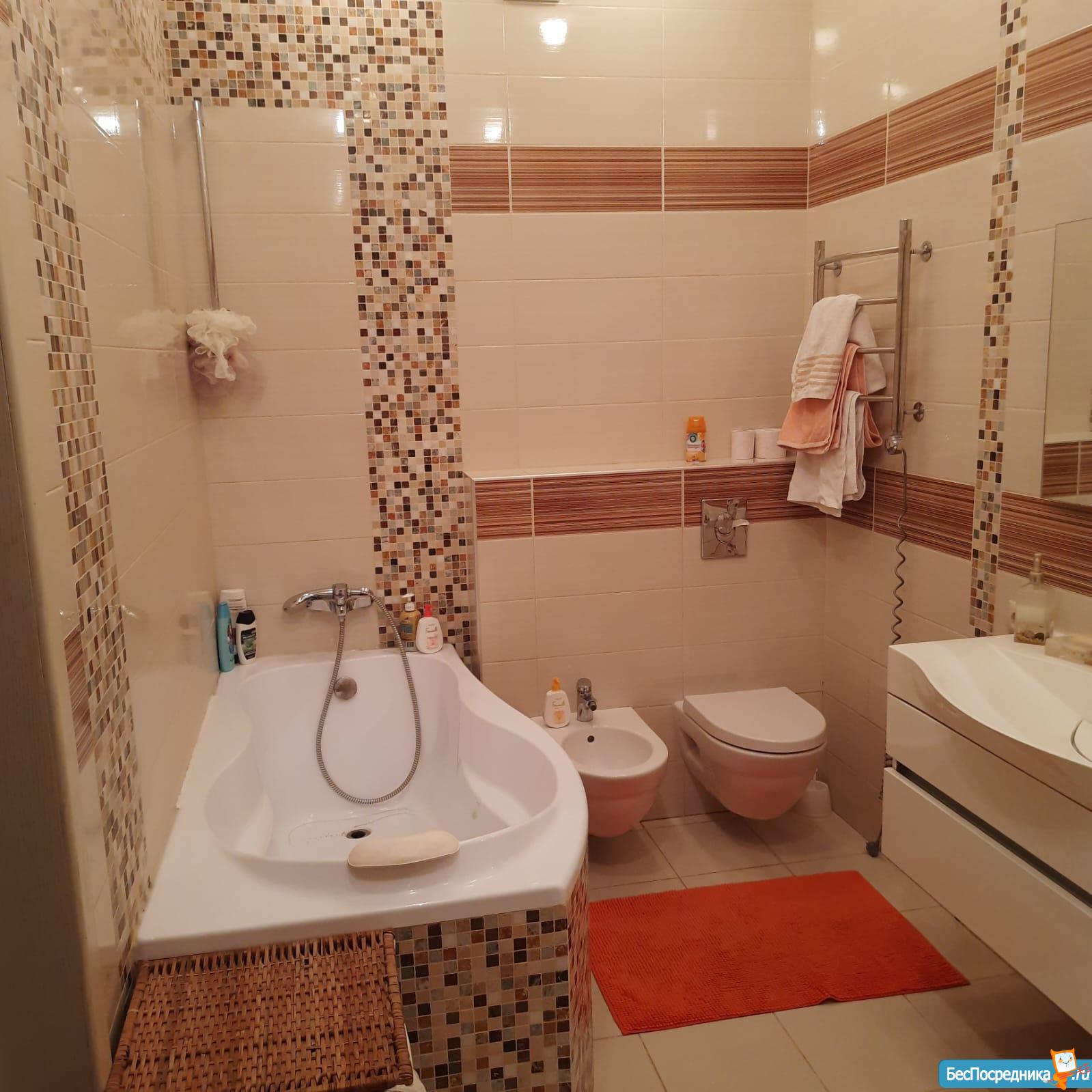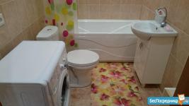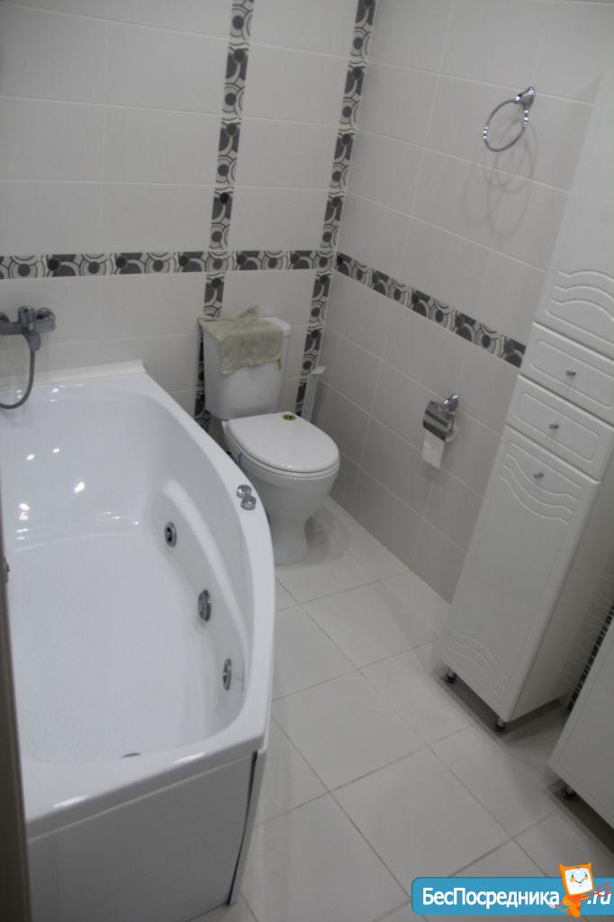 Санузел совмещенный с современной сантехникой. В прихожей гардеробная для хранения вещей.