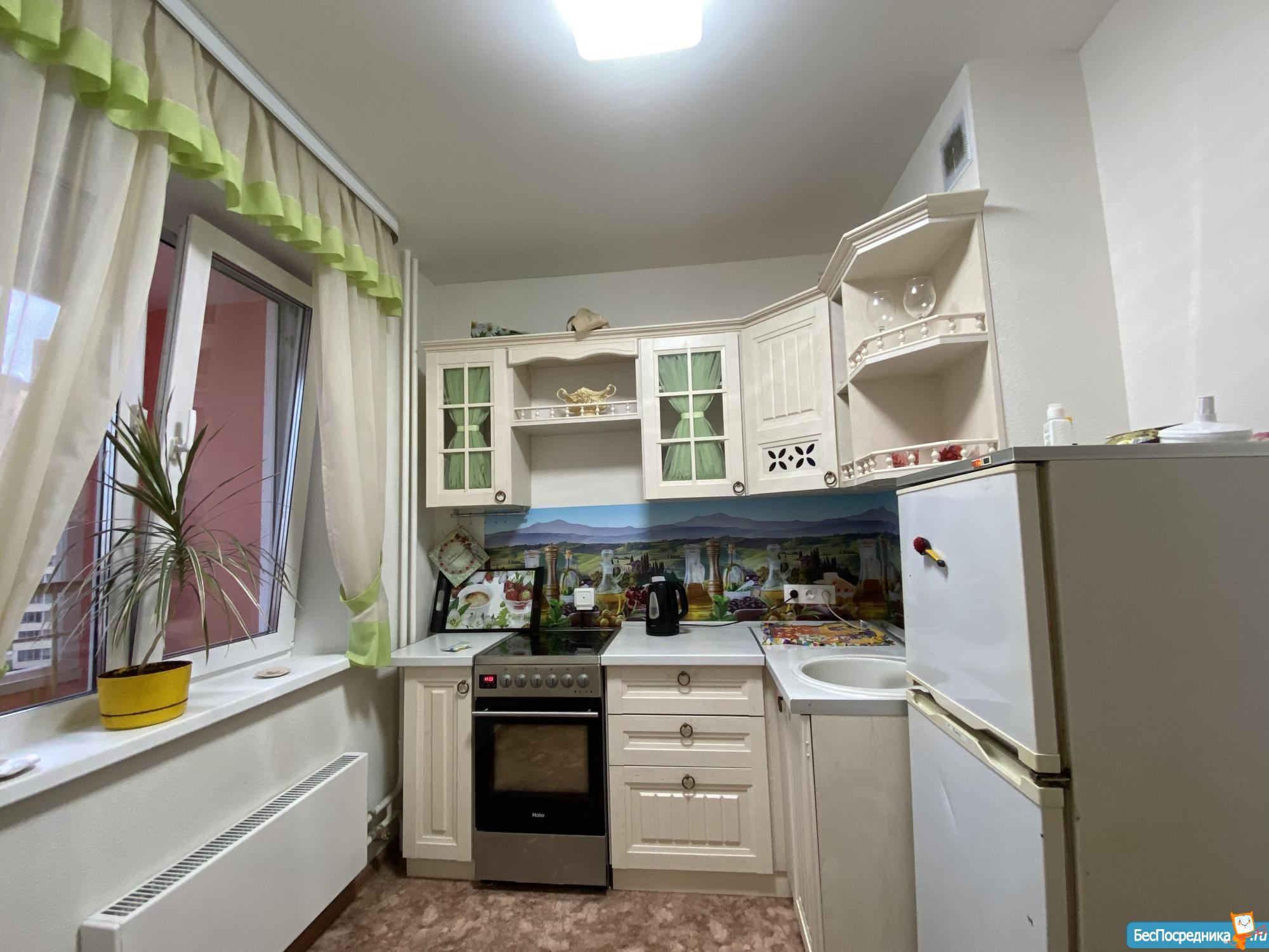 ✅ гарнитур в стиле прованс, хорошая многофункциональная плита, холодильник, чайник, микроволновая печь;