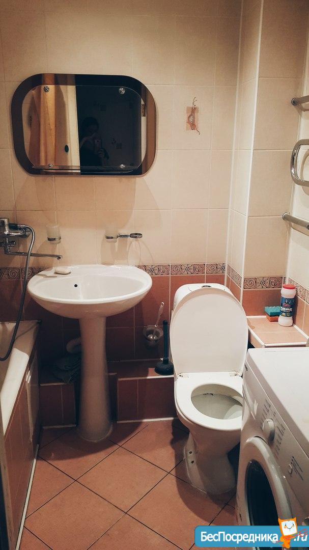 двухспальный диван, большой письменный стол с компьютерным стулом. Туалет с ванной совмещены и облицованы кафельной плиткой. Обстановка видна по фото, всё соответствует. Без животных. 13500 + счетчики.