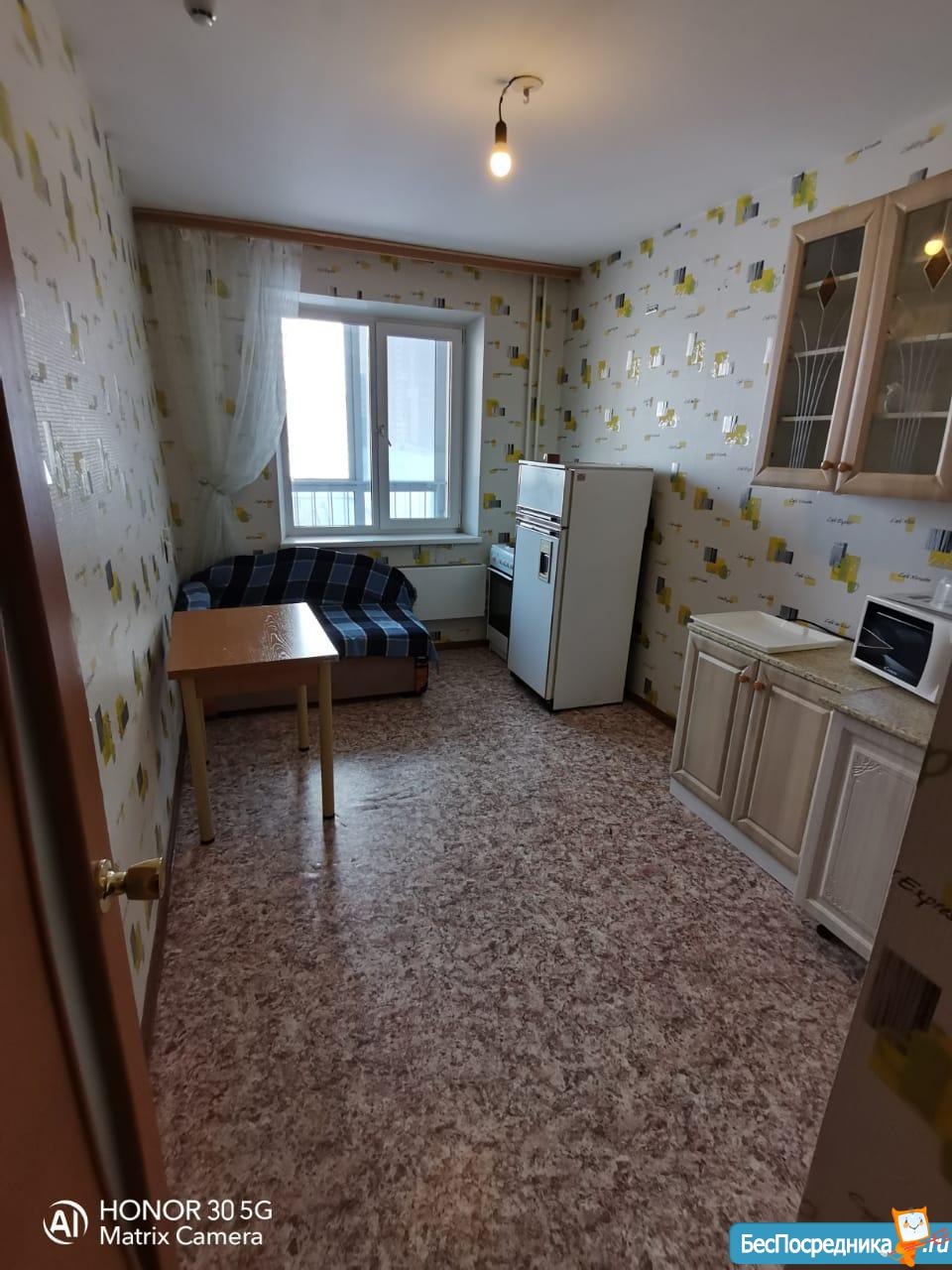 Квартира в новом доме, хороший ремонт. Из мебели есть: диван-чебурашка, 2 кресла, тв-тумба, шкаф, кухонный уголок (б/у), кухонный гарнитур, прихожая. Из техники:холодильник, стиральная машинка-автомат, телевизор. Оплата 1050