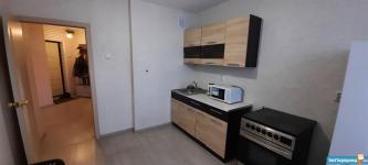 Есть всё необходимое: кухня, плита, холодильник, микроволновая печь, ванная комната со стиральной машинкой автомат, жилая комната с вместительным шкафом купе и диваном, коридор со шкафом купе.