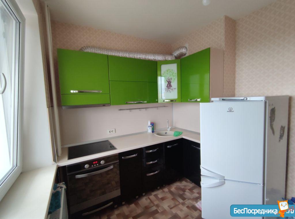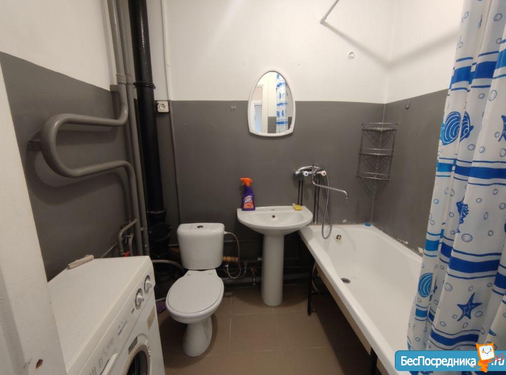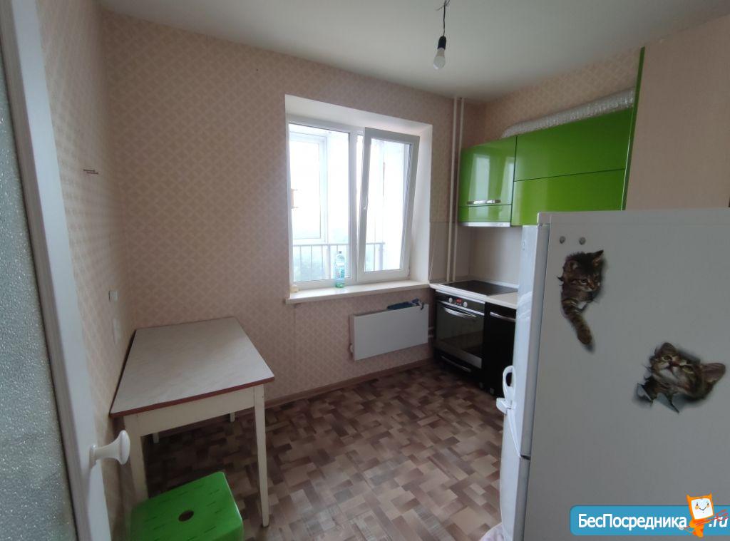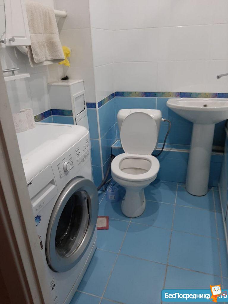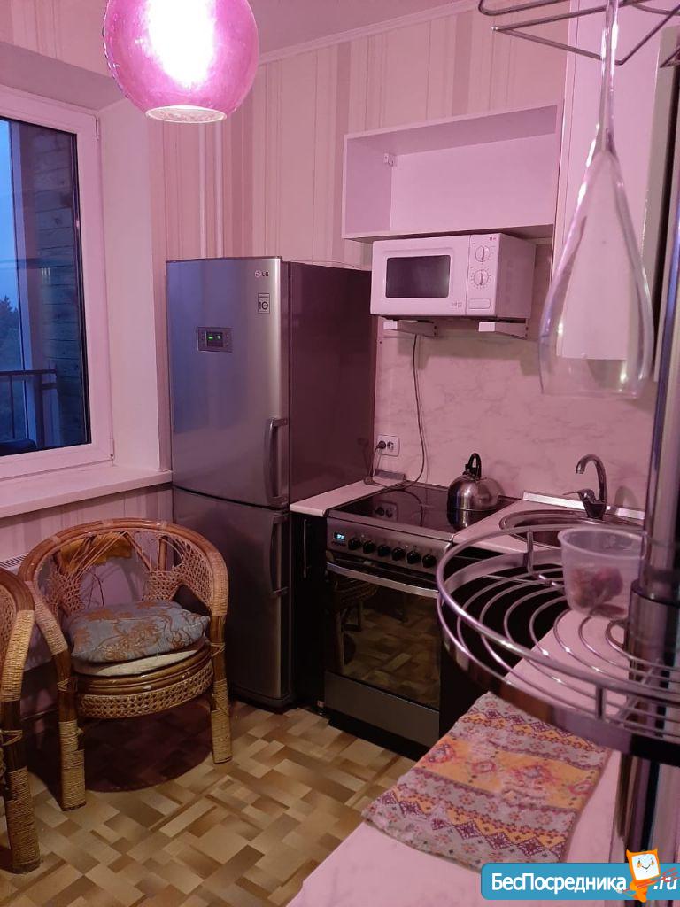 В квартире есть все необходимое для жизни: диван, стол, стул, плита, духовка, холодильник и стиральная машина.