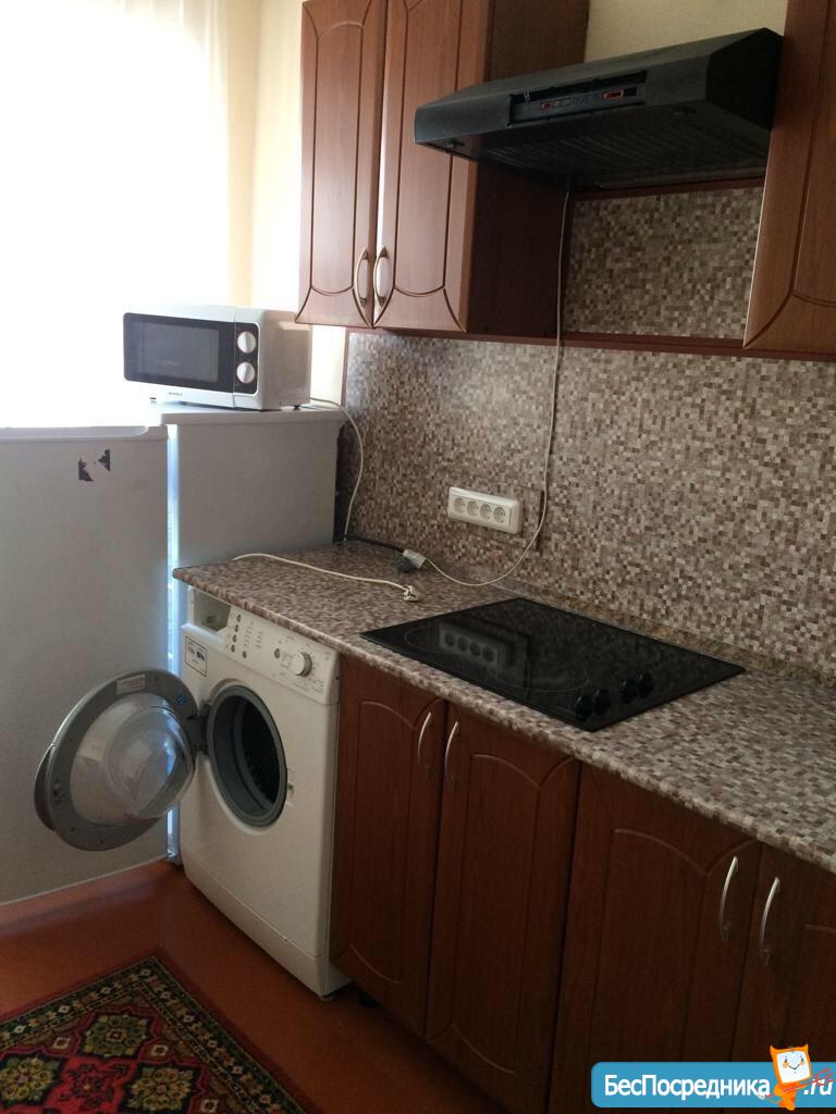 Собственник. Сдам 1-комнатную квартиру для 1-2 человек, без детей, без животных. Есть диван, кресло-кровать, шкаф, стол, кух.гарнитур, кух.стол, плита, холодильник, стиральная машинка автомат, интернет.