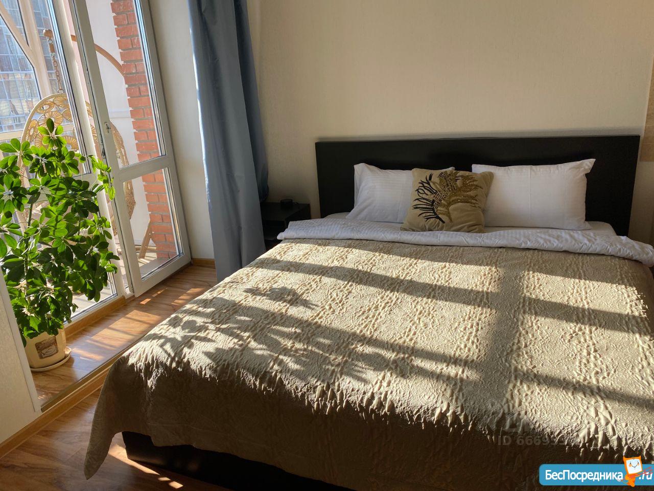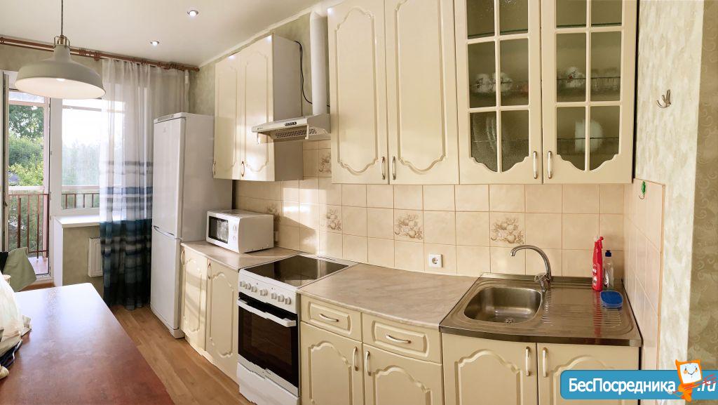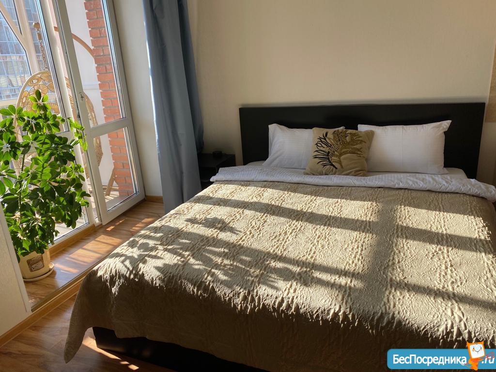 Квартира светлая, хорошо освещённая, две просторные комнаты, санузел совмещённый, большая кухня. 3 полноценных спальных места (кровать и диван).