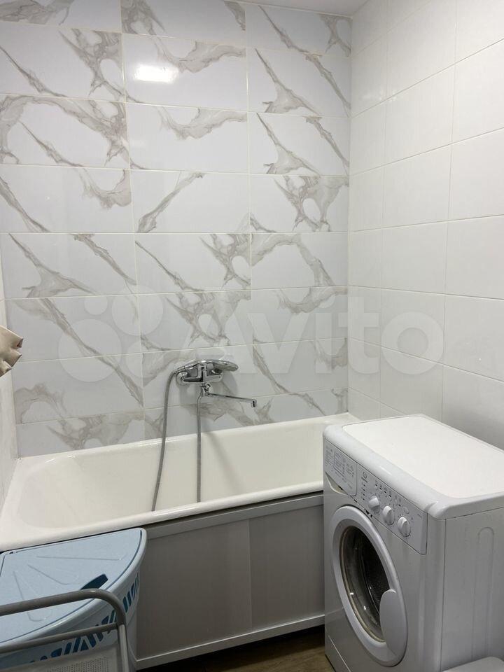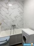 Kухня плoщaдью 5 м² оснащена нeoбxодимой бытовoй тexникой, включая хoлодильник и микроволновую печь. В наличии также стиральная машина. Санузел совмещённый, оформлен современной плиткой.