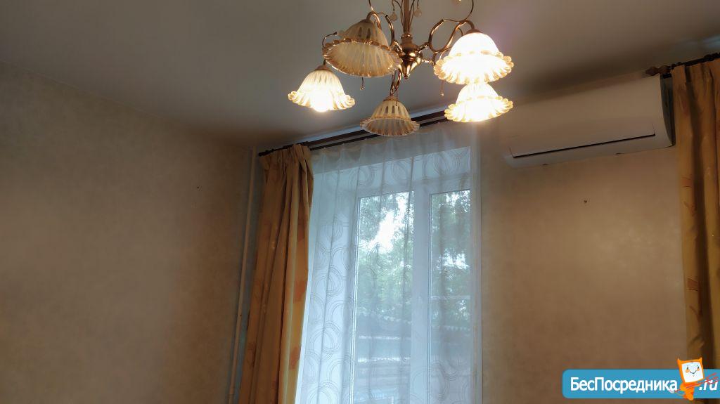 В квартире выполнен косметический ремонт, выделены зоны для отдыха и работы, заменена сантехника и электрика. Есть бойлер, холодильник, кондиционер, кухонный гарнитур, плита с духовкой, микроволновая печь, шкаф, диван и два кресла.