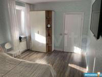 В квартире современный ремонт, всё в светлых тонах, отделка качественная. Полностью обставлена всей необходимой для жизни мебелью и техникой, всё отражено на фото(не задавайте плиз дурацких вопросов). Во торой комнате - 3х метровый модульный диван, очень удобный; комод, письменный стол и стул, шкаф, кресло, стенка и телевизор-плазма. Не фотографировали комнату по причинам приватности. Санузел совмещенный, в плитке. Лоджия остекленная, с отделкой. Солнечная сторона.