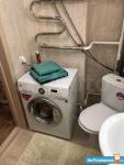 Имеется стиральная машинка, боллер, телевизор, утюг, гладильная доска, посуда, холодильник.