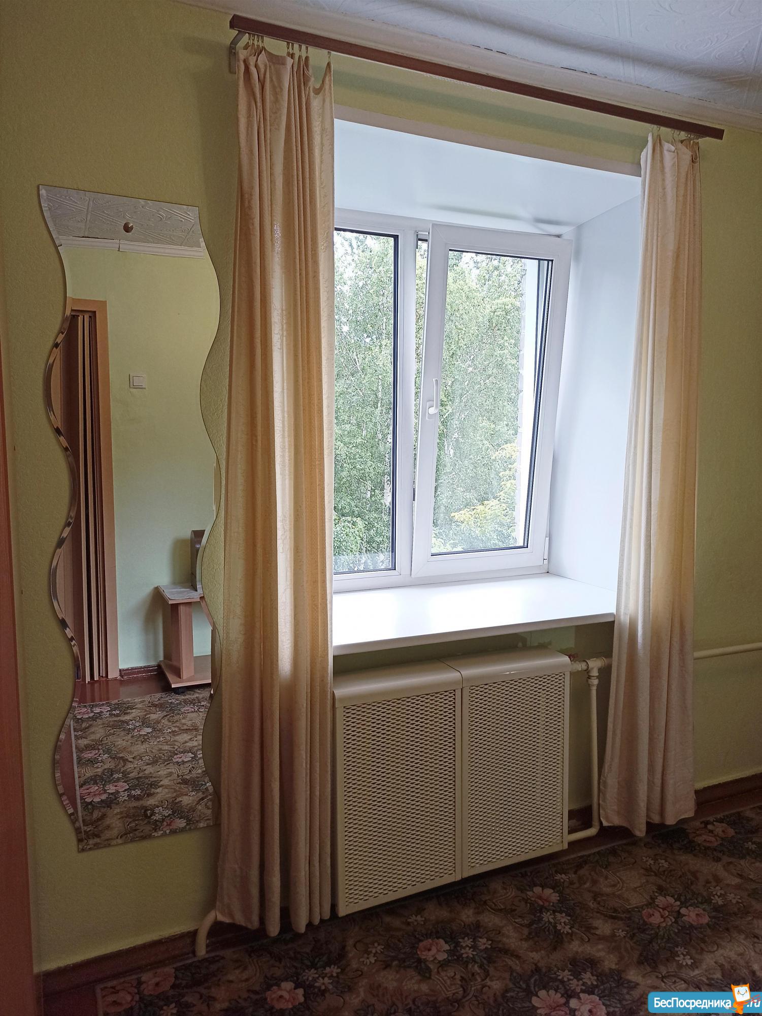 Окно выходит на тихое, не проходное место, поэтому в окна никто не заглядывает, комфортно жить