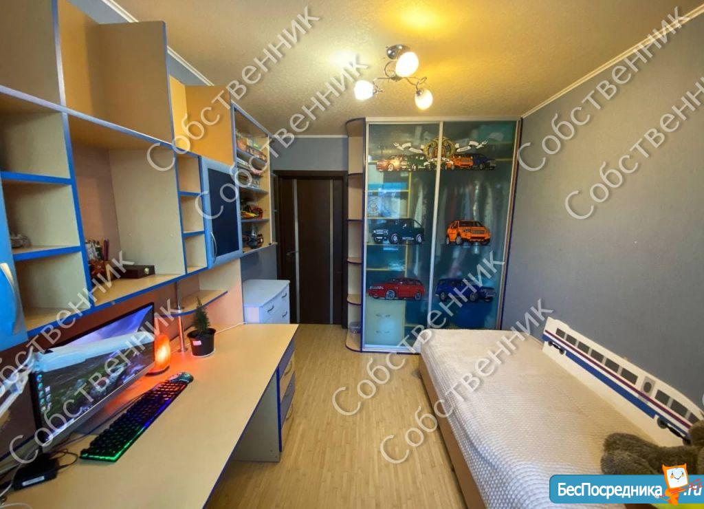 В детской: взрослая односпальная кровать, шкаф-купе, рабочий/учебный стол со шкафчиками, комод, эатжерка для игрушек, компьютер, офисное кресло