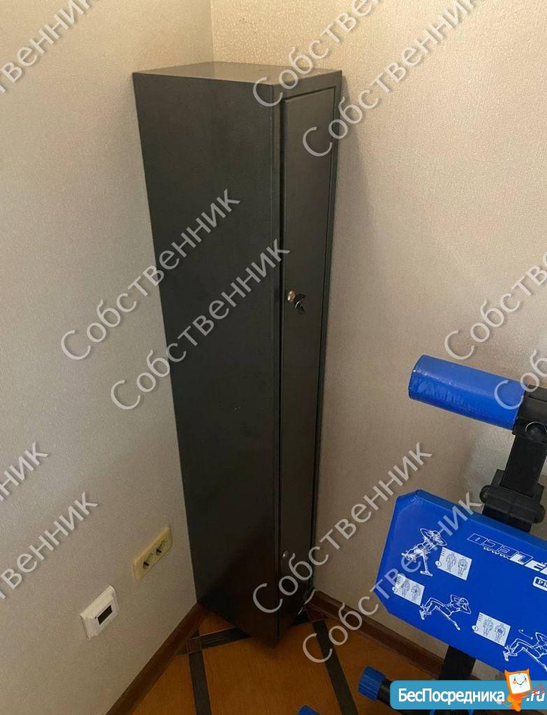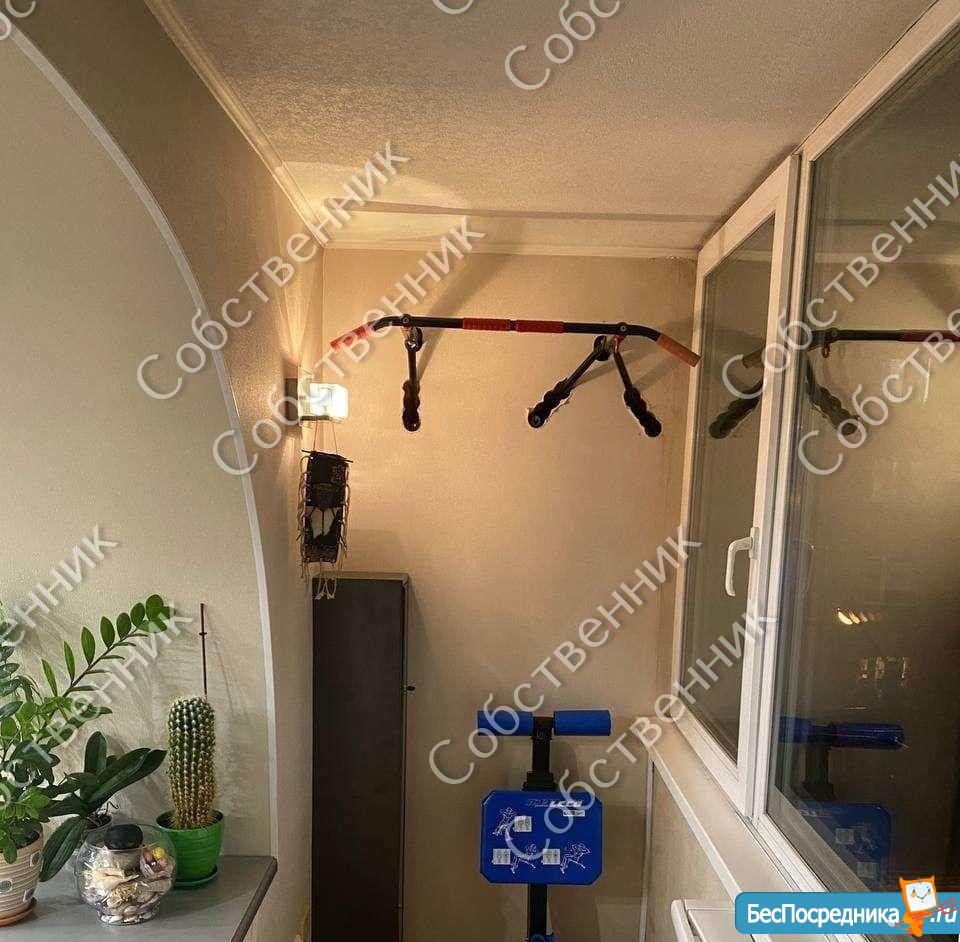 На балконе: оружейный сейф, турник, рабочий стол, офисный стул