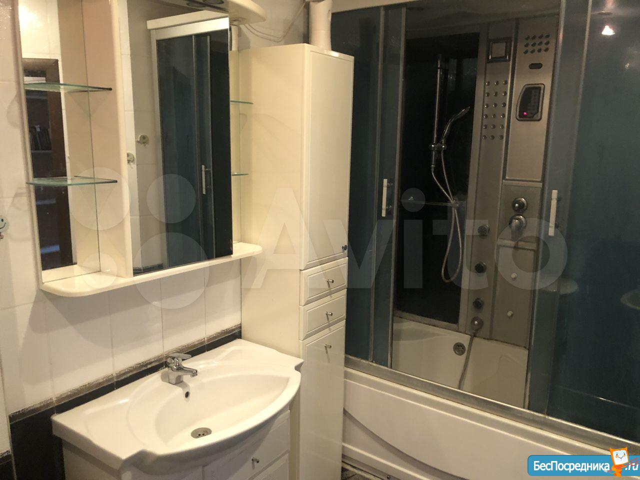 В санузле: стиарльная машинка, душевая кабина, бойлер
