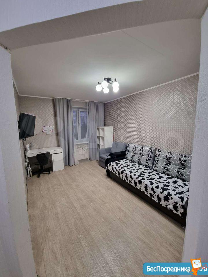 Отличная студия Советском районе(микрорайон Ясная поляна) на 2-м этаже в 11-этажном кирпичном доме с качественным ремонтом, со всей необходимой мебелью и техникой.