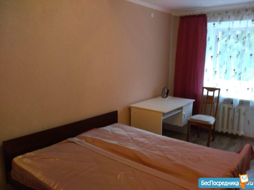 Квартира после капитального ремонта, с хорошей отделкой. Есть письменный стол, 2 кровати, шкафы для белья, одежды и в прихожей, холодильник, стиральная машина, эл. плита, шкаф и стол кухонные, навесные шкафы для посуды.