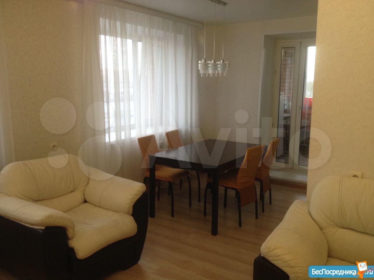 Кирпичный дом, теплая квартира, мебель, техника есть (плита, холодильник, микроволновка, чайник, кофеварка, телевизор, диван, кресло, кровать, шкафы, немного посуды). Есть лоджия