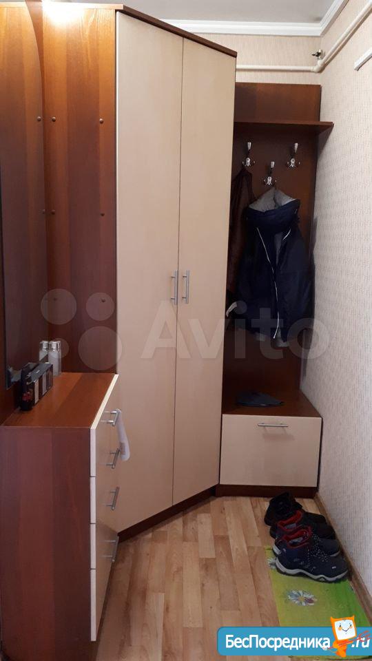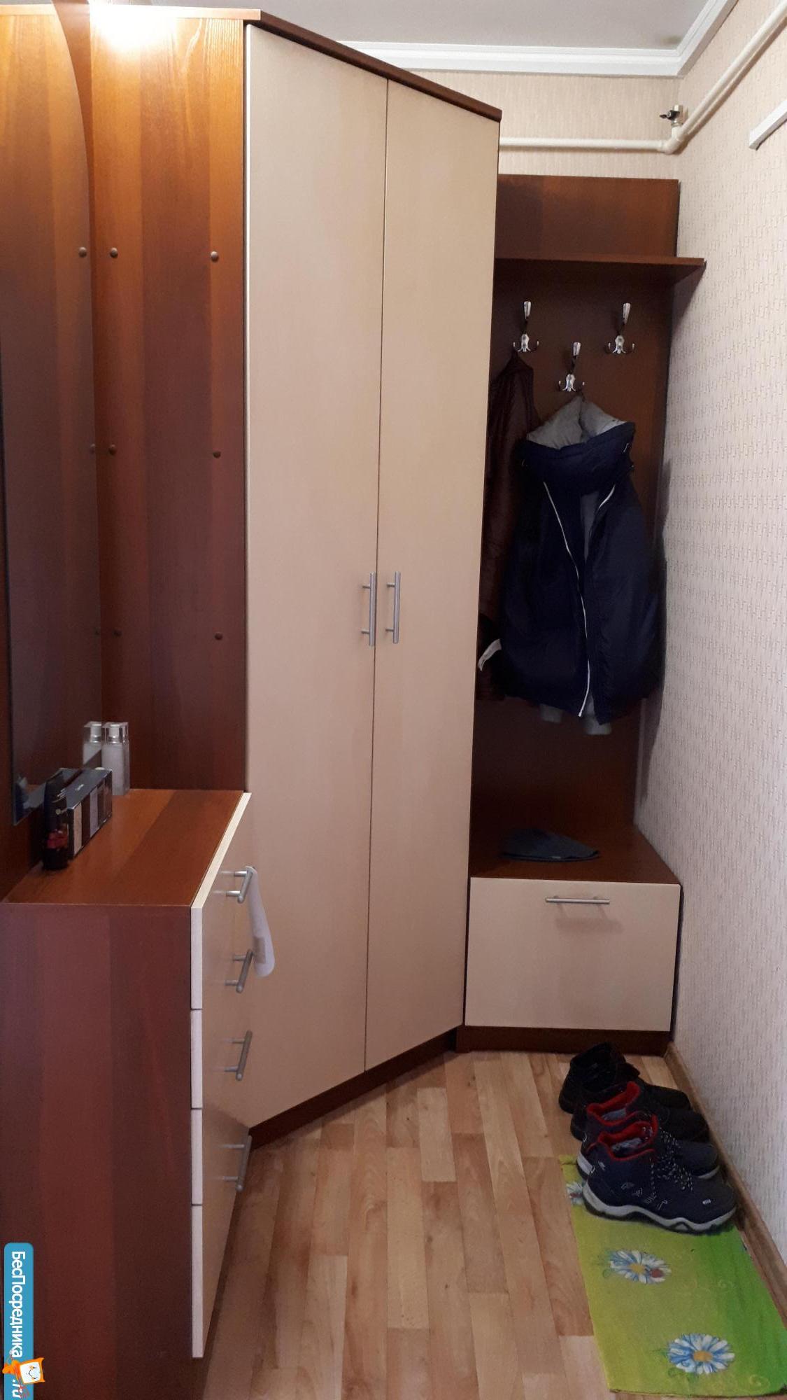 Есть вся необходимая для проживания мебель: двухспальный диван, шкаф, кухонный гарнитур. прихожая в коридоре.