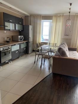 Сдам в аренду 2-х комнатную квартиру в 10-тиэтажном кирпичном доме, 9 этаж, площадь 57,4 кв. м. Кухня 12 кв. м. Хороший ремонт, современные импортные материалы. Есть все, необходимое для проживания: холодильник, варочная панель, духовой шкаф, микроволновка, посудомоечная машина, стиральная машина, водонагреватель, электрочайник, пылесос, кондиционеры, посуда.