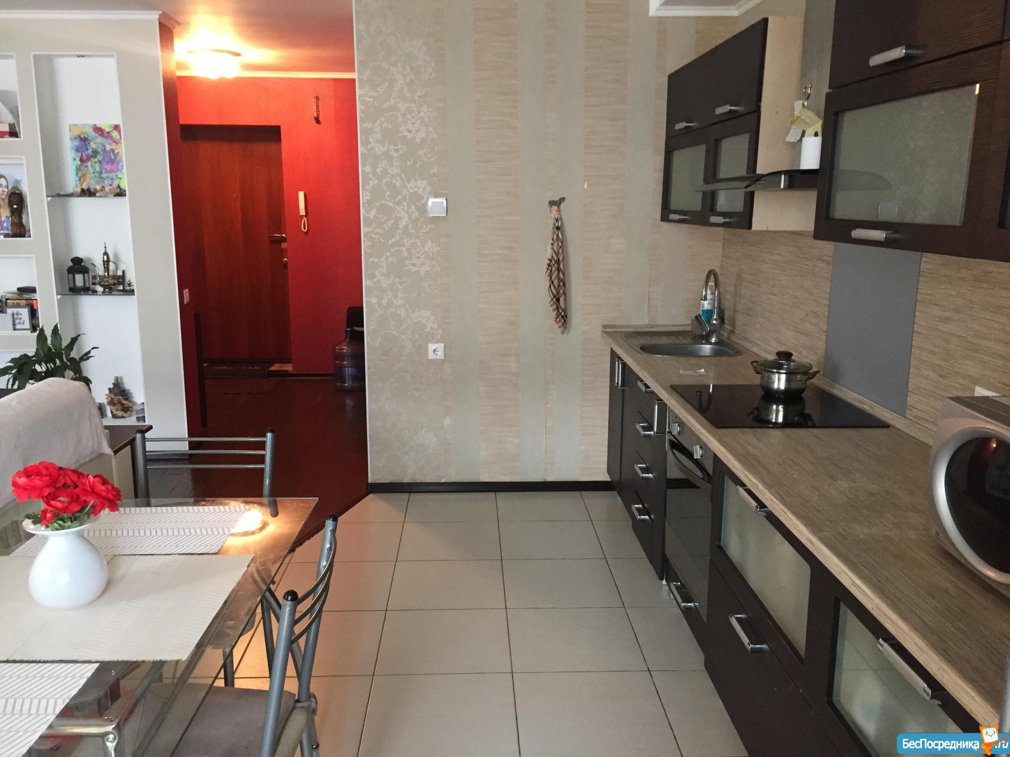 В квартире есть вся необходимая мебель и техника (холодильник, микроволновка, чайник, варочная панель, посудомоечная и стиральная машина, бойлер).
