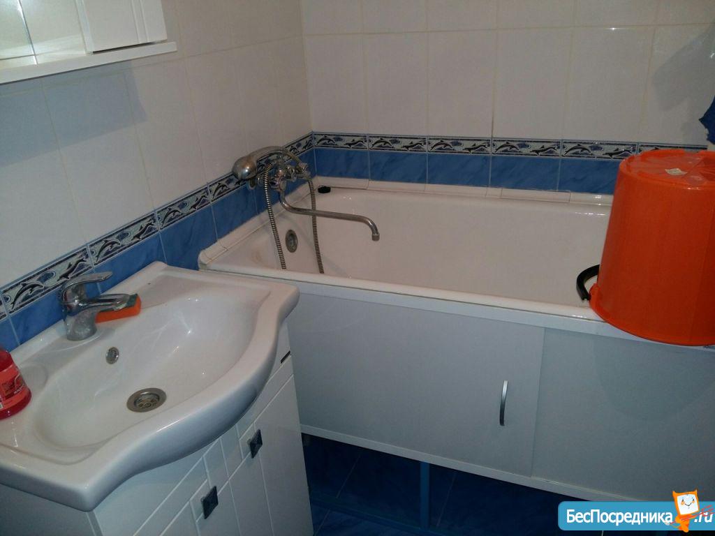 Диван (еврокнижка, спальное место 186х196 см), стиральная машинка-автомат LG, пластиковые окна, балконная дверь, подоконный пластиковый холодильник, люстры в комнате и кухне, шторы в комнате, кухне, ванной.