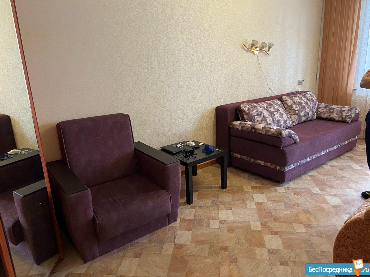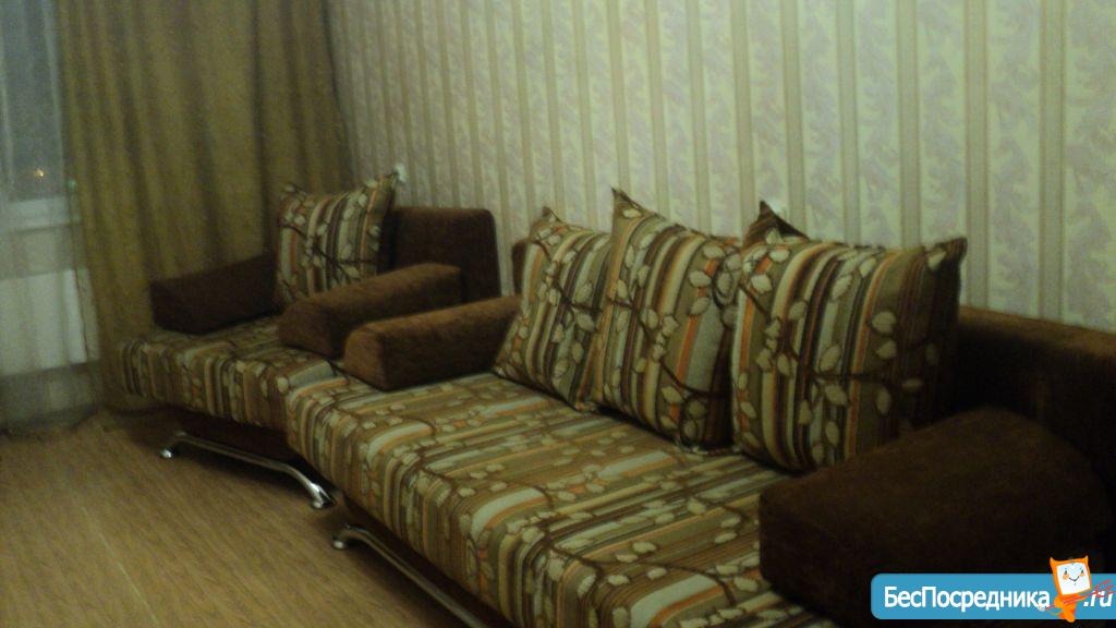 Собственник. На длительный срок. Из мебели в зале диван, компьютерный стол, две тумбы, телевизор. На кухне телевизор, холодильник, гарнитур и стол с мягким уголком. В прихожей угловой шкаф-купе. Залог 7000 рублей.