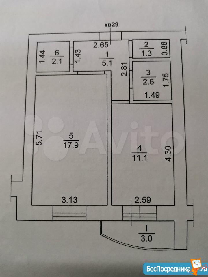 * Плoщaдь: общaя 40.5 кв.м.