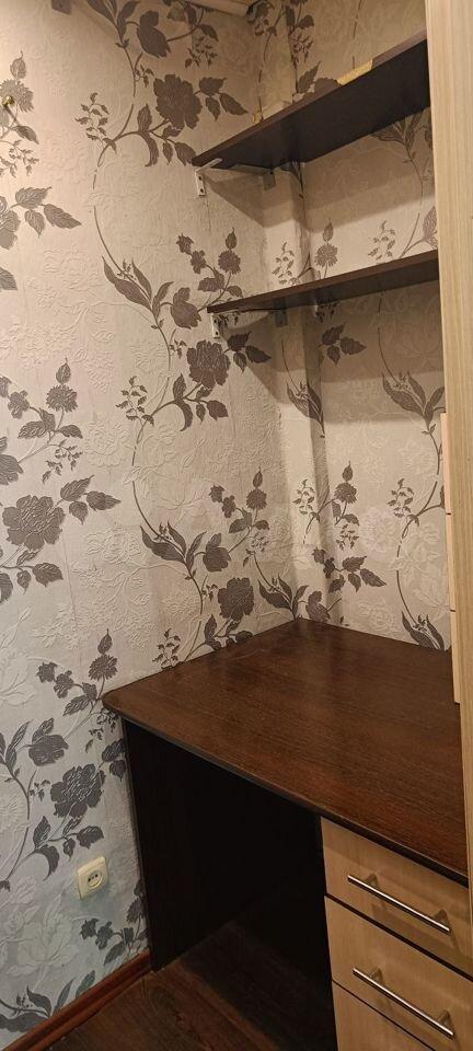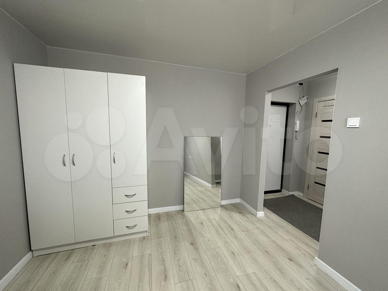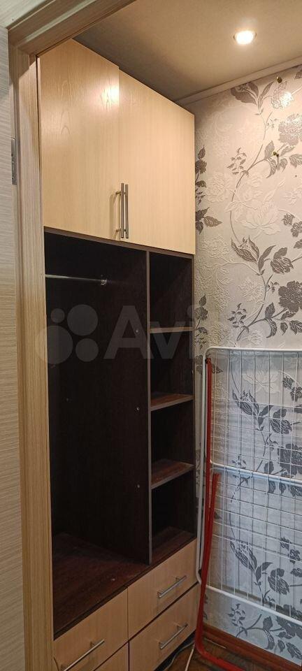 Квартира в центре города. Комната без мебели. На кухне кухонный гарнитур, эл. печь. В прихожей установлен шкаф.
