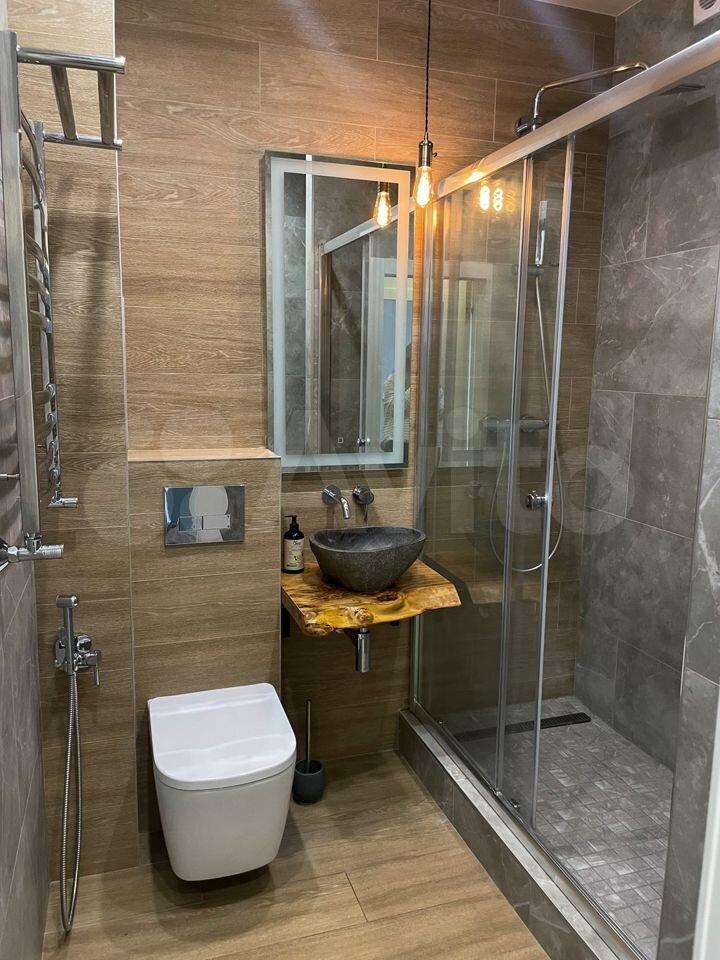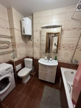 Чистая, светлая, солнечная, с панорамными окнами, с дизайнерским ремонтом и всей необходимой мебелью и техникой- холодильник, варочная панель, духовой шкаф, большая посудомоечная машина, фильтр для питьевой воды, телевизор, кондиционер, стиральная машина, бойлер, микроволновка, чайник, утюг. Хороший диван, шкаф и рейл.