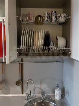В квартире есть всё для жизни: кухонный гарнитур, микроволновая печь, холодильник, плита, чайник, посуда, двухспальная кровать, телевизор, стол для работы,учёбы, утюг, сушилка, гладильная доска, интернет.