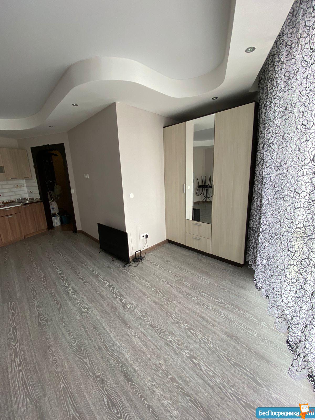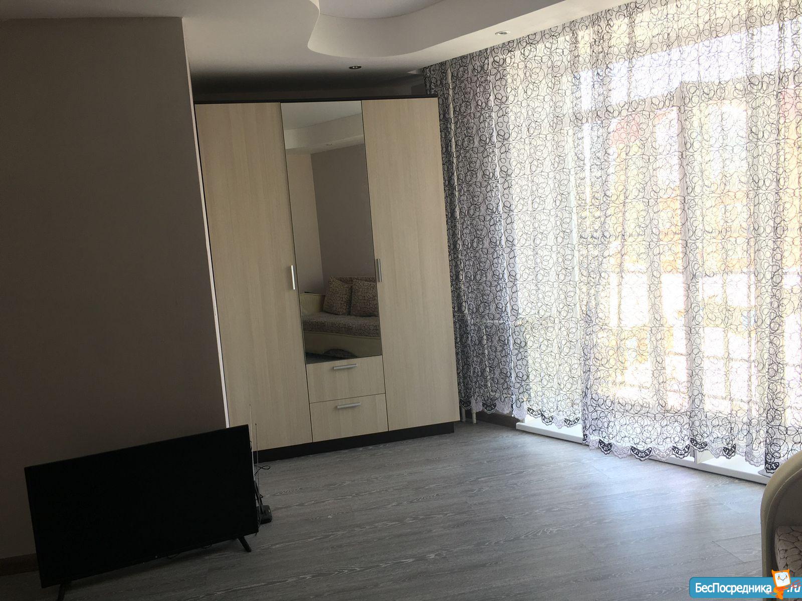 Собственник. На длительный срок сдам квартиру-студию. Есть мебель, бытовая техника, посуда. Дополнительно оплачиваются свет и вода по счетчикам, страховой депозит в размере арендной платы. Без домашних животных.