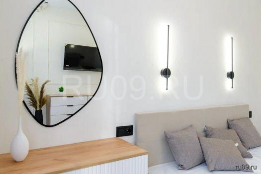 Квартира общей площадью 47, 1 м² . Внутри всё продумано до мелочей: современный ремонт создаёт атмосферу уюта, удобная мебель — диван, шкаф, обеденный стол и кухонный гарнитур — сделают ваше проживание максимально комфортным. Для вашего удобства квартира полностью оснащена техникой: холодильник, стиральная и сушильная машины, плита, духовка, телевизоры и чайник готовы к использованию.