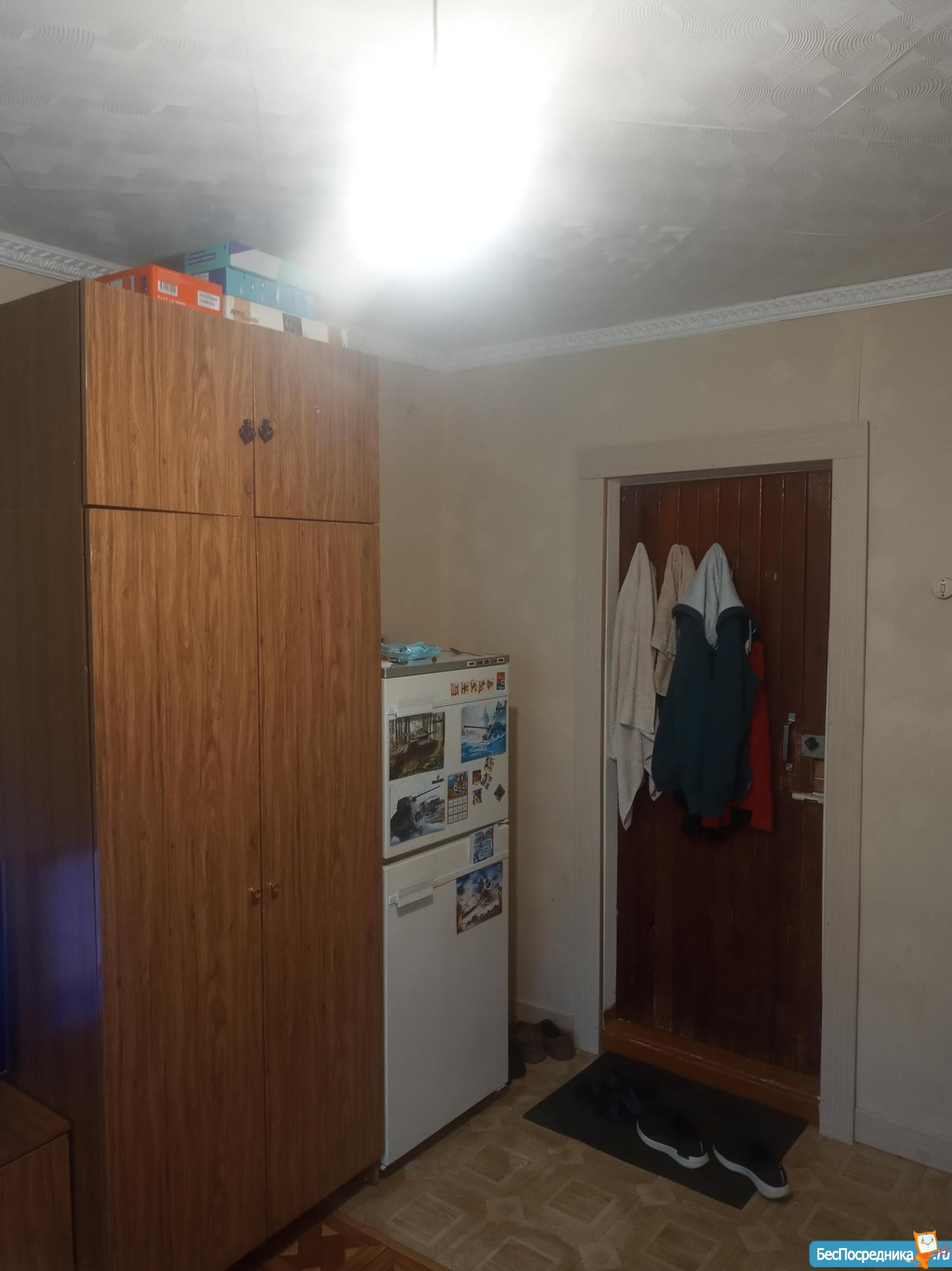 Комната в общежитие, мебель, плитка, холодильник.