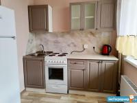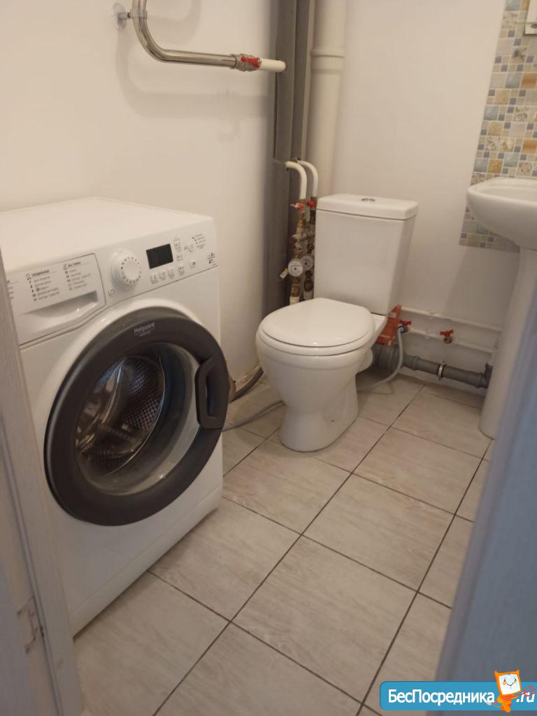 Уютная квартира со всем необходимым: Стиральная машинка, холодильник, плита, микроволновка, мебель и кухонный гарнитур.