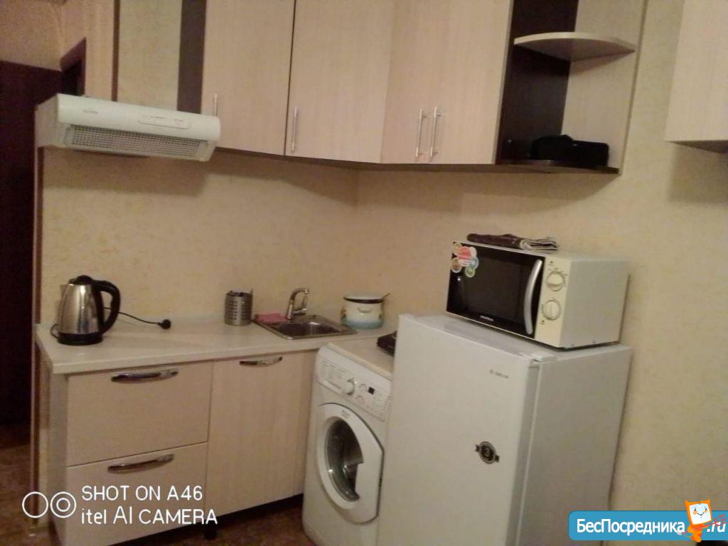 Есть мебель, холодильник, телевизор, стиральная машина, микроволновая печь, кухонная плита.