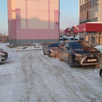 Парковка во дворе дома за шлагбаумом. В микрорайоне детский сад, магазины. Окна выходят на коттеджный поселок.