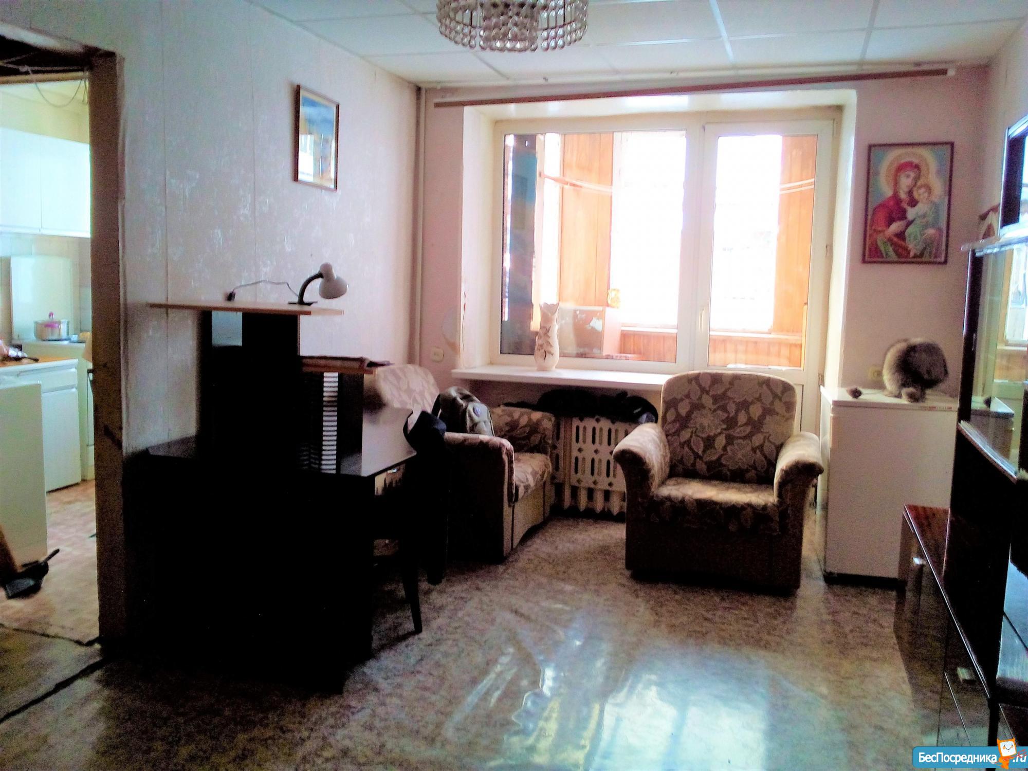 Центральное отопление, горячая вода от бойлера, холодная вода, центральная канализация. Небольшой чулан. Из техники оставляю: бойлер, стиральную машинку автомат, электроплиту с духовкой, микроволновую печь. Из мебели: два кресла и диван двухспальный (новые), стулья, табурет, стенка, шкаф, два стола, тумбочки, кровать односпальная (советские). Окна все пластиковые. Имеется застекленный балкон.