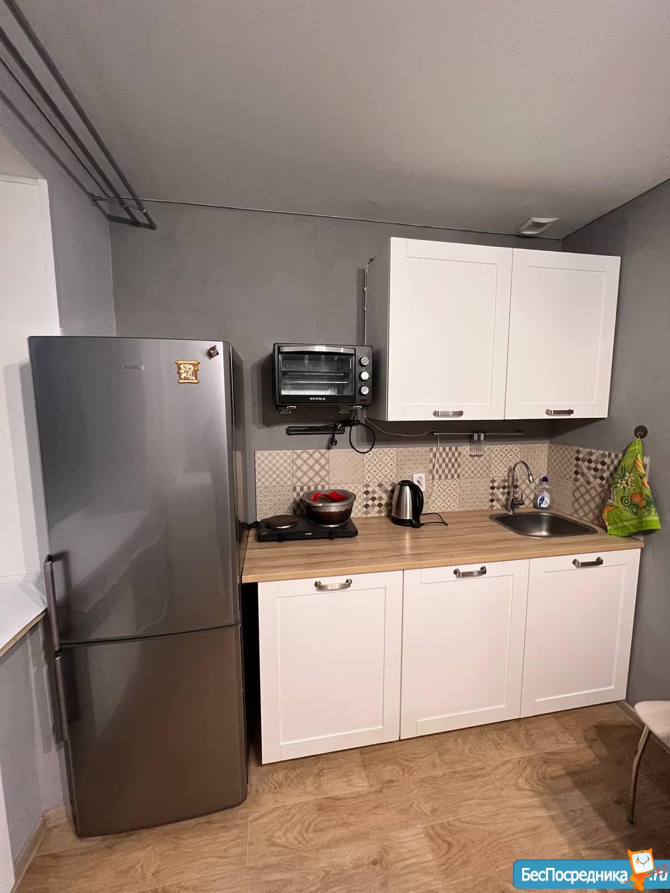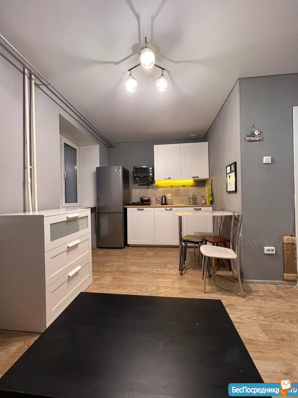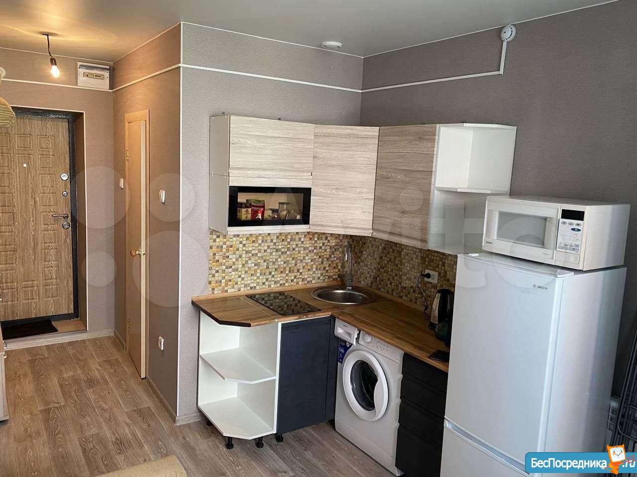 Уютную, чистую Студию в спальном районе! Новая мебель, техника (холодильник, плита , чайник, водонагреватель, машинка, платяной шкаф, стол, стулья) - всё для комфортной жизни! Новый ремонт.