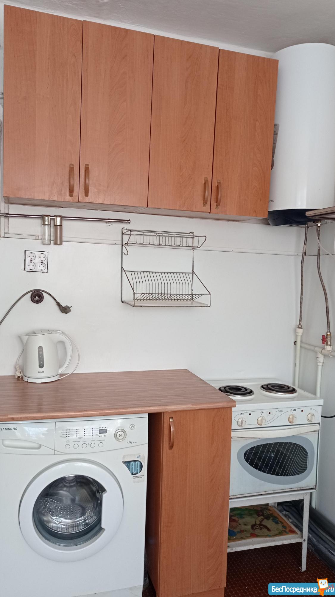 обеденный стол, холодильник, электролита ,микроволновка, чайник, стиральная машина.Санузел и душ на секцию. Хорошие соседи.Дом расположен в 5 минутах от пр.Ленина (остановка Дрожзавод). Детская площадка. В комнате кухня. И в секции тоже