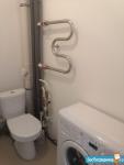 В ванной комнате: стиральная машина, корзина для белья, сушилка напольная и все что на фото