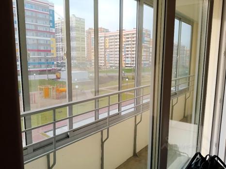 Огромная застеклённая лоджия, можно устроить кабинет в летнее время.