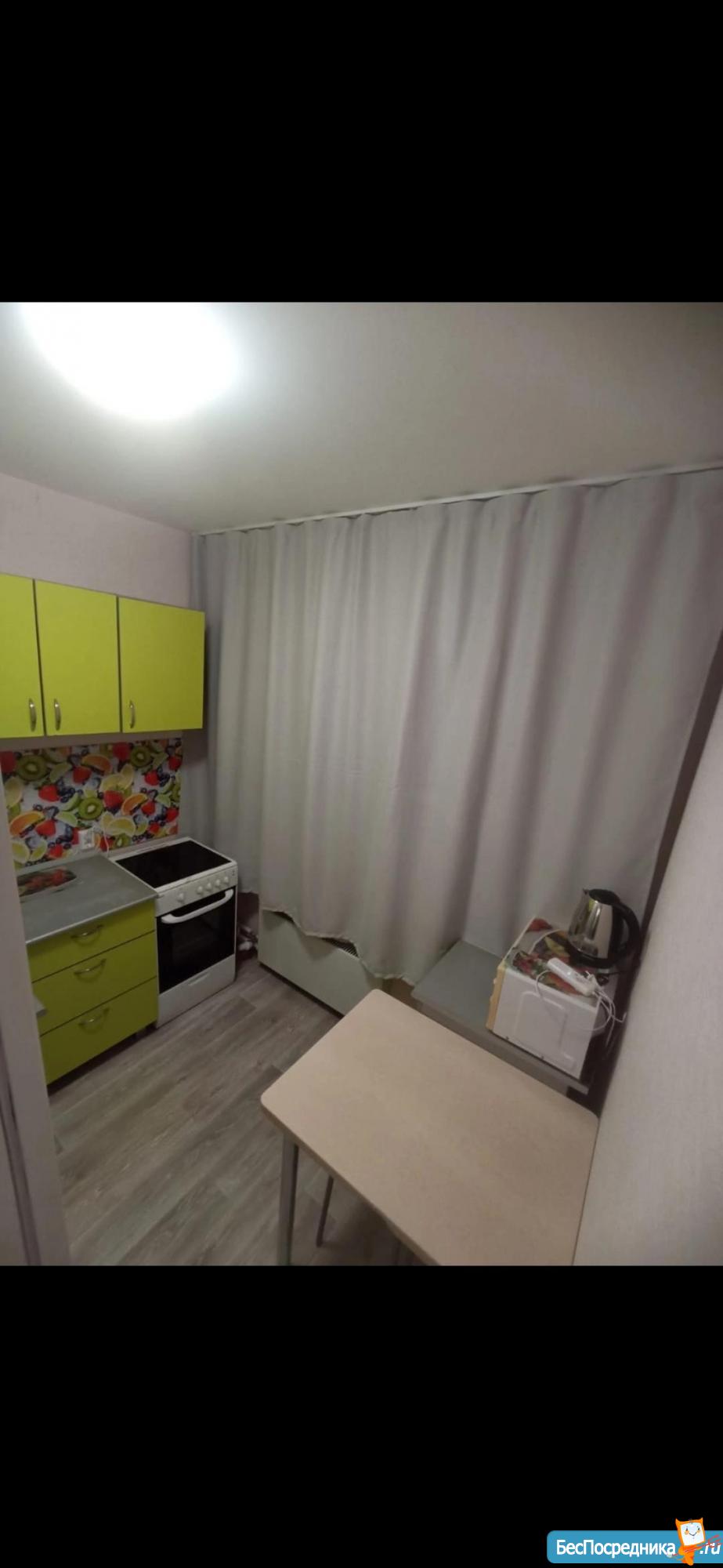 В квартире имеется все необходимое. Стиральная машина, плита, холодильник, телевизор, чайник. Из мебели все видно на фото. Вся мебель на кухне. Проживание без домашних животных. Рядом детский сад, магазины, Аренда + свет и вода по счётчикам. Залог 10000р