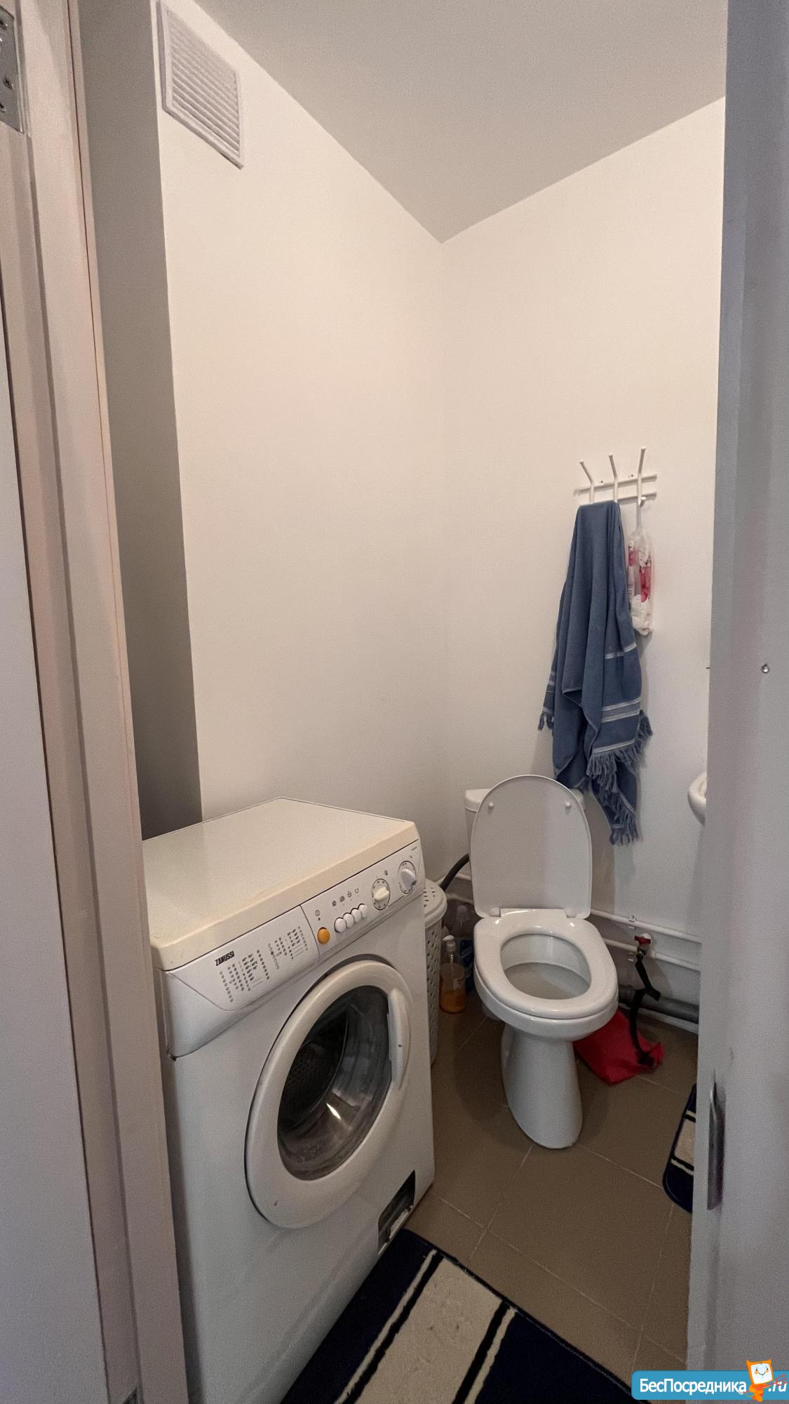 В ванной комнате: стиральная машина и все, что на фото.