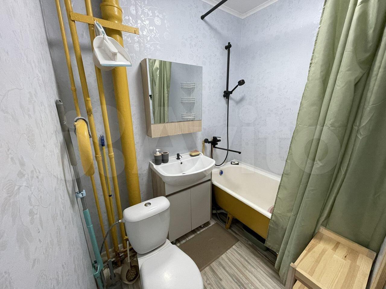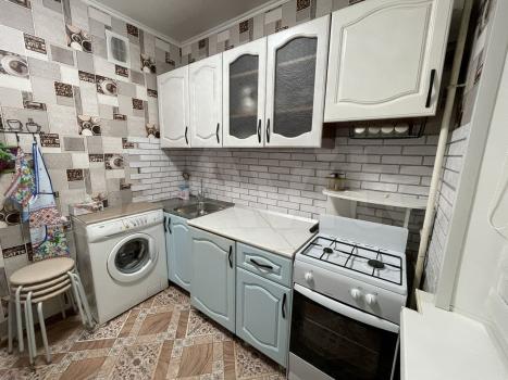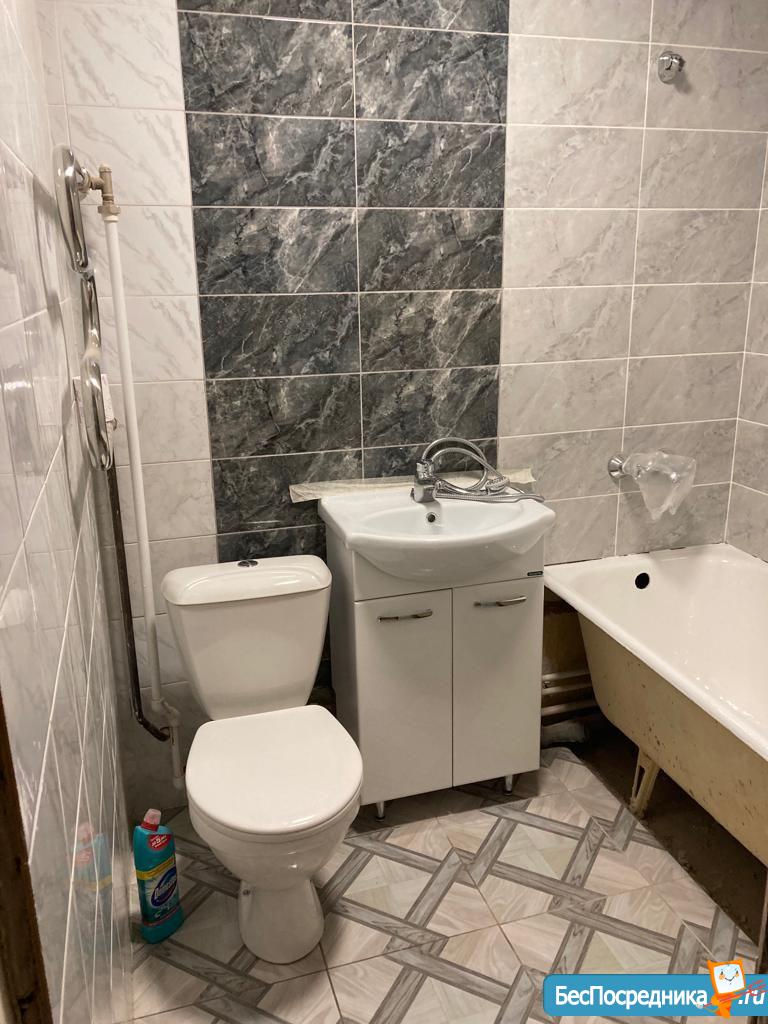 Кухня оборудована необходимой техникой: холодильник, плита, микроволновая печь и стиральная машина. Санузел совмещённый, выполнен косметический ремонт.