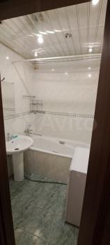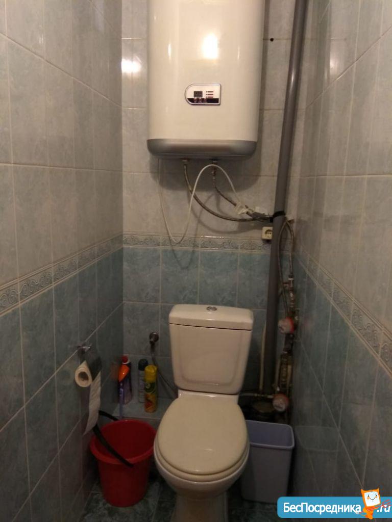 Прихожая, ванная комната только после ремонта, ванна ещё в пленке. Установлен бойлер, стиральная машинка Bosh.