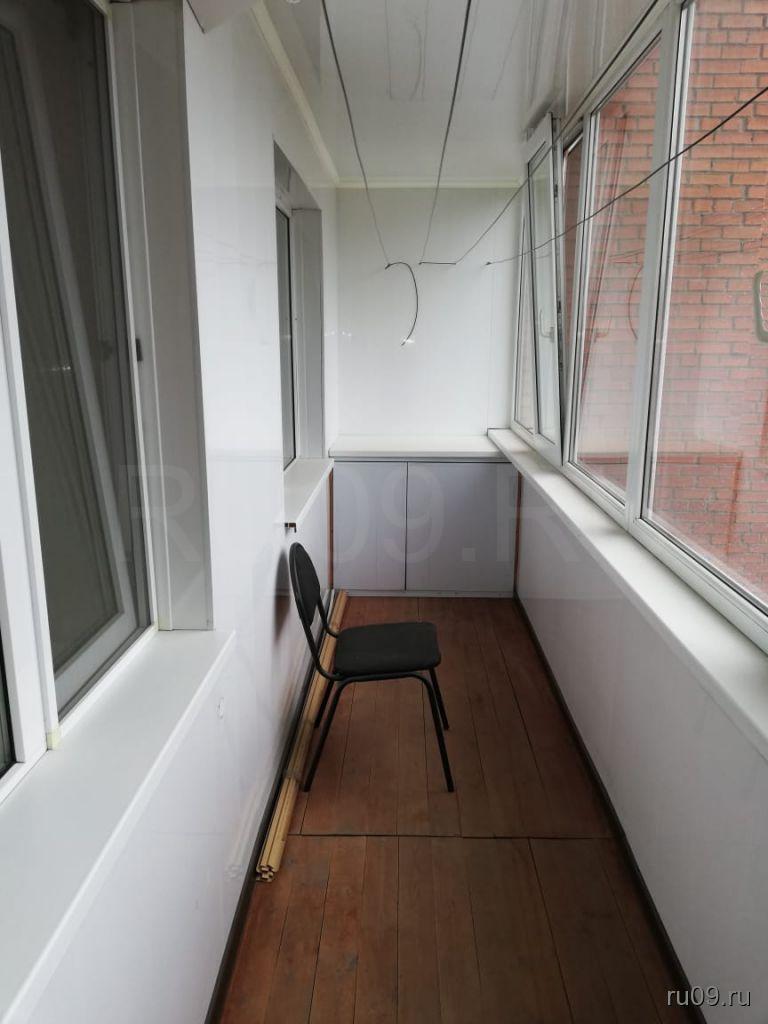 Кухня оборудована необходимой для проживания техникой: кухонная плита, чайник, микроволновка. В зале имеется диван, рабочий стол, стенка и шкафы для хранения. Телевизора нет. Есть лоджия.